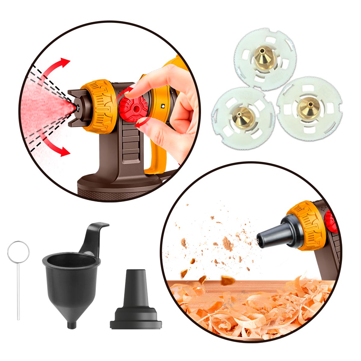 Το εργαλείο προορίζεται για βαφή, με χρώματα με βάση διαλύτες και με βάση το νερό, αστάρια, χρώματα δύο συστατικών, βερνίκια, χρώματα φινιρίσματος, χρώματα αυτοκινήτων, χρώματα νεφτιού, και συντηρητικά ξύλου. Απαραίτητη προϋπόθεση είναι ένας καλός καθαρισμός μετά από κάθε χρήση.