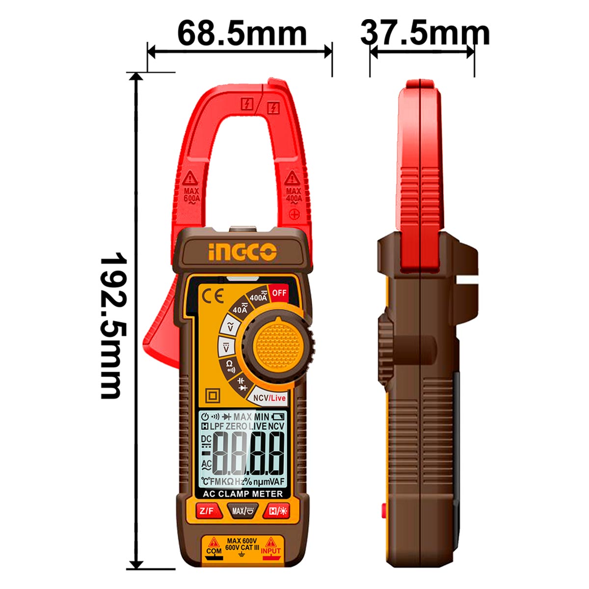 Λεπτομέρειες προϊόντος Για συνεχόμενο και για εναλλασσόμενο ρεύμα (AC/DC). Εύρος μέτρησης: (εύρος ενδείξεων μέτρησης 4000) • τάσης εναλλασσόμενου ρεύματος AC 400mV/4V/40V/600V, • τάσης συνεχούς ρεύματος DC 400mV/4V/40V/600V, • ένταση εναλλασσόμενου ρεύματος AC 4A-400A, • ένταση συνεχούς ρεύματος DC 4A-400A, • αντίστασης 0-40MΩ, • χωρητικότητα 4nF-4mF, TRUE RMS. NCV: Ανιχνευτής τάσης άνευ επαφής. Φωτιζόμενη οθόνη LCD με μεγάλα, ευδιάκριτα ψηφία. Οπίσθιος φωτισμός (backlight). Φακός led. Χρόνος μέτρησης 0.5sec. Συγκράτηση μέτρησης (hold). Έλεγχος διόδου. Ένδειξη χαμηλής μπαταρίας. Αυτόματη απενεργοποίηση. Κατηγορία μέτρησης CAT III.